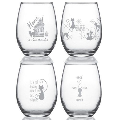 / Cats Set G1 – 15oz Stemless Wine Glasses
