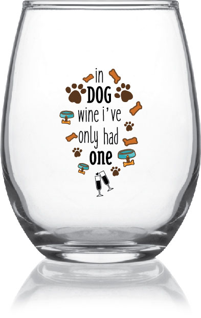 Dogs Set I1 – 15oz Stemless Wine Glasses